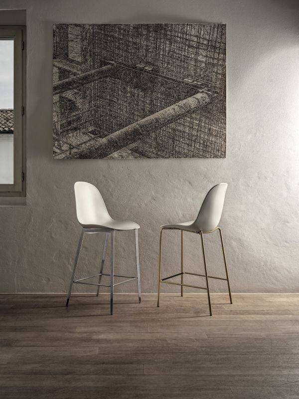 Moody Bar Sandalyesi, grafik üçgen ayak geometrisi ve yuvarlak kesitli hatlarıyla modern-minimal çizgiyi güçlü bir siluetle birleştiren çok yönlü bir bar taburesidir. Lake boyalı metal çerçeve, ince profiline rağmen yüksek rijitlik ve stabilite sağlar; düzenli otur-kalk, yana yüklenme ve yoğun kullanım döngülerinde “oynama” hissini en aza indirir. Kabuk formu polipropilen malzemeden üretilmiştir; hafifliği, yüzey dayanımı ve kolay temizlenebilirliğiyle konut ve profesyonel alanlar için idealdir. Model, döşemeli (önden kaplamalı) veya döşemesiz seçeneklerle sunulur; bu sayede proje ihtiyacına, kullanım yoğunluğuna ve hedeflenen estetik dile göre doğru konfigürasyon hızlıca seçilebilir.